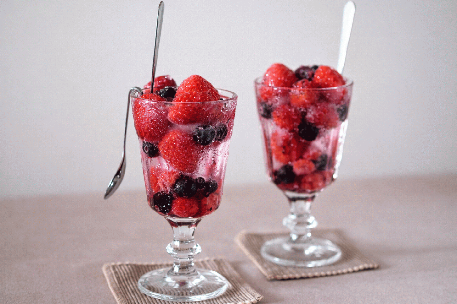 冷凍美ら島ベリーが氷の代わりとなり、ソーダが薄まることなく、