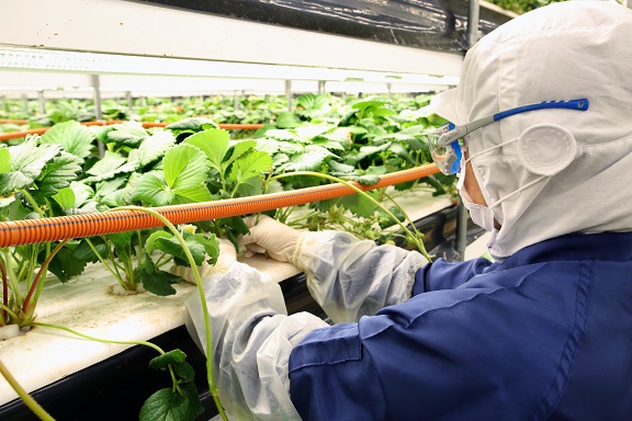 沖縄県大宜味村で水耕栽培で育ったイチゴ「美ら島ベリー」を、