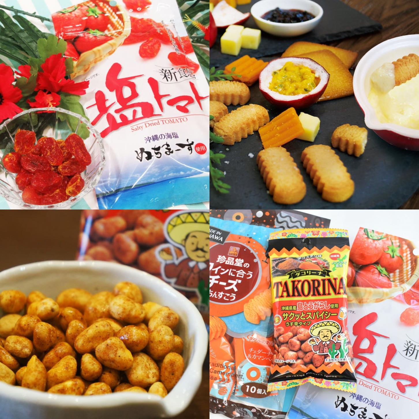 豆菓子の香ばしさ、ちんすこうのやさしい甘さ、塩トマトのさっぱりした旨み。