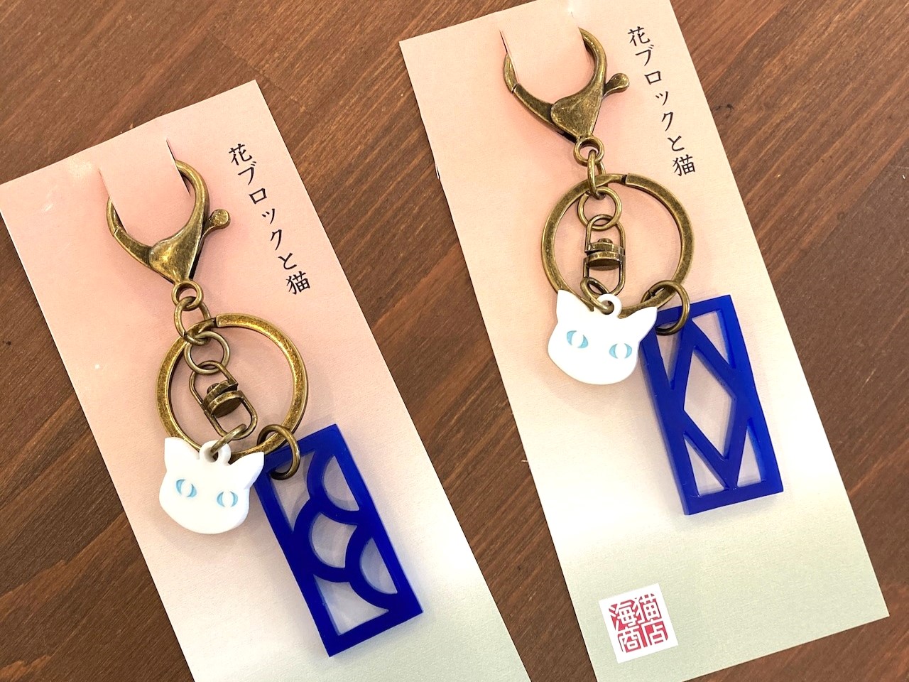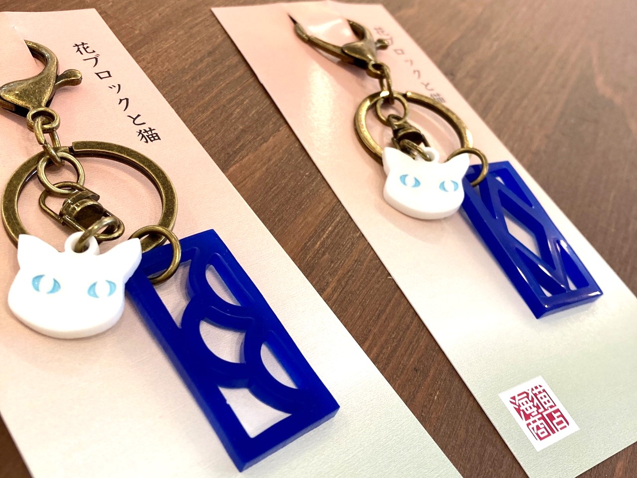 沖縄生まれのかわいい花ブロックと猫が、手のひらサイズのキーホルダーになりました。