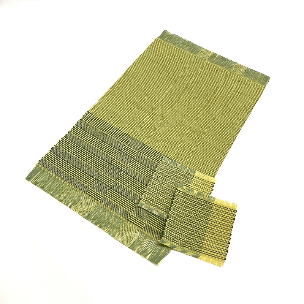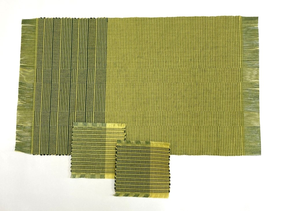 さとうきび(ウージ)で染めた糸を丁寧に織り上げた、テーブルセンターとコースターのセットです。