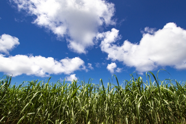 染色には、さとうきびの葉と穂の部分を用い、染液につける時間や、 葉を刈り取る季節によっても少しづつ色が変化し、若草色や萌葱色などの グリーン系から黄金色などの落ち着いたイエロー系まで実に様々な色を楽しむことができます。