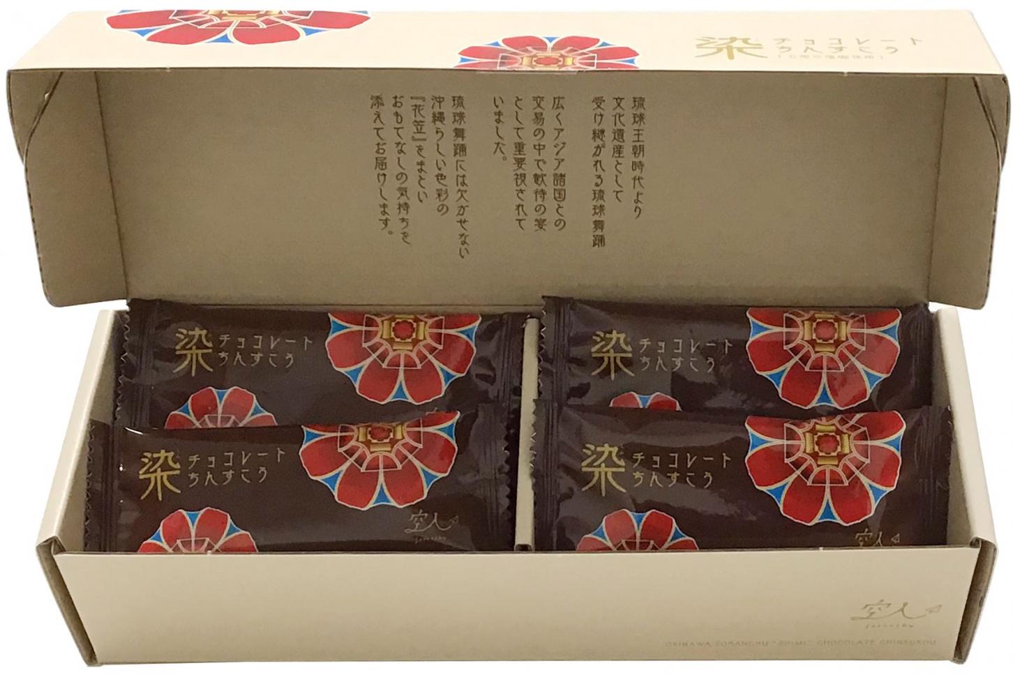 チョコレートの甘味とちんすこうの塩味が絶妙な味わいある「染チョコレートちんすこう」をどうぞご堪能ください。