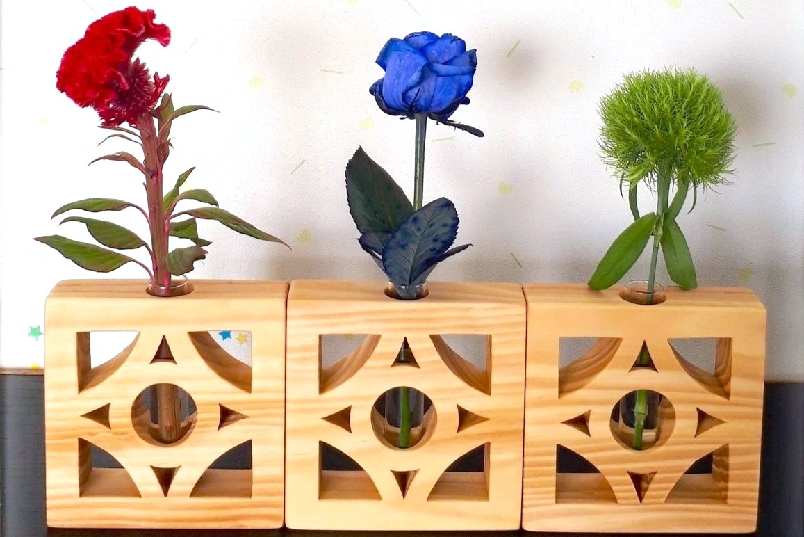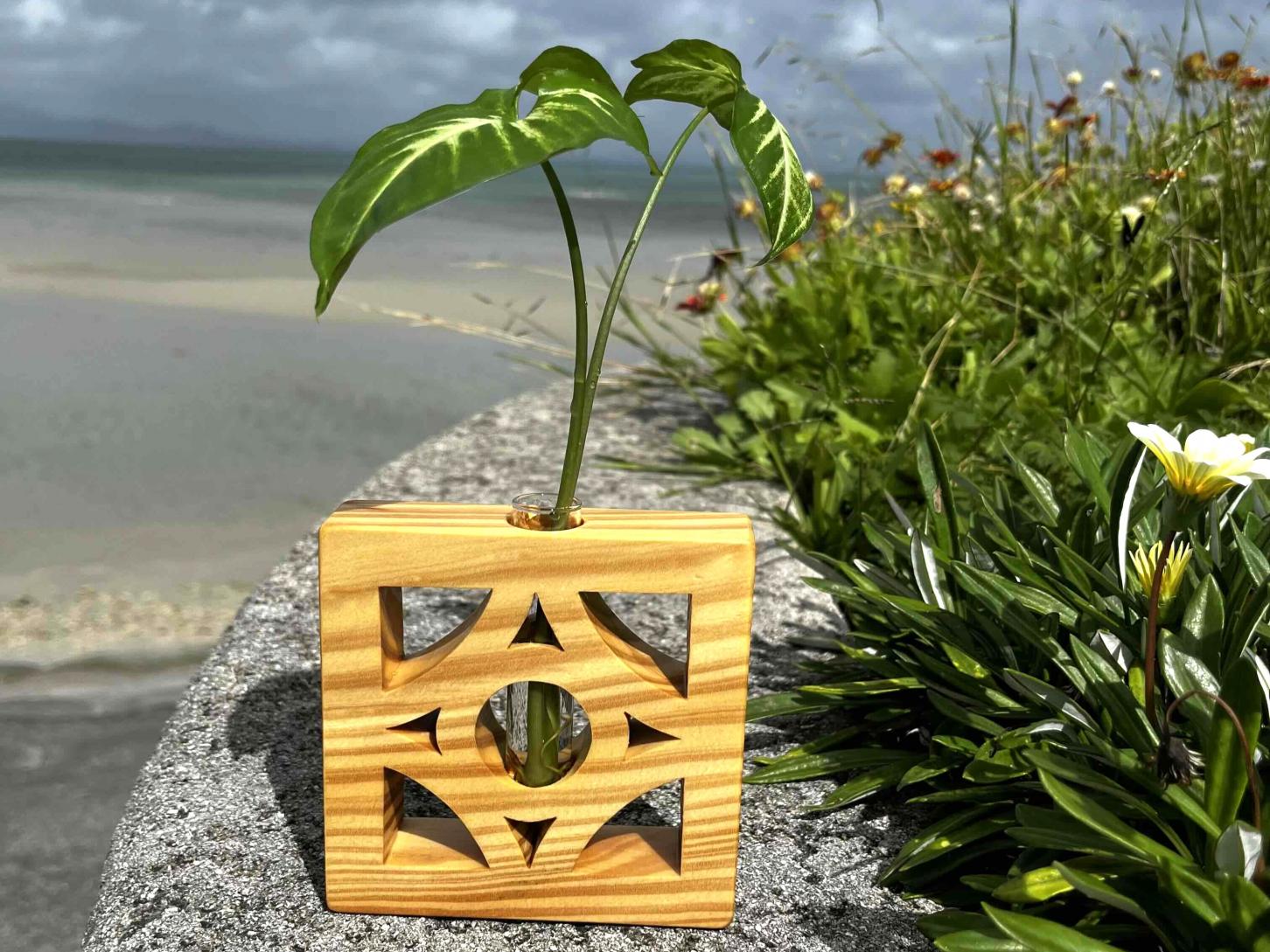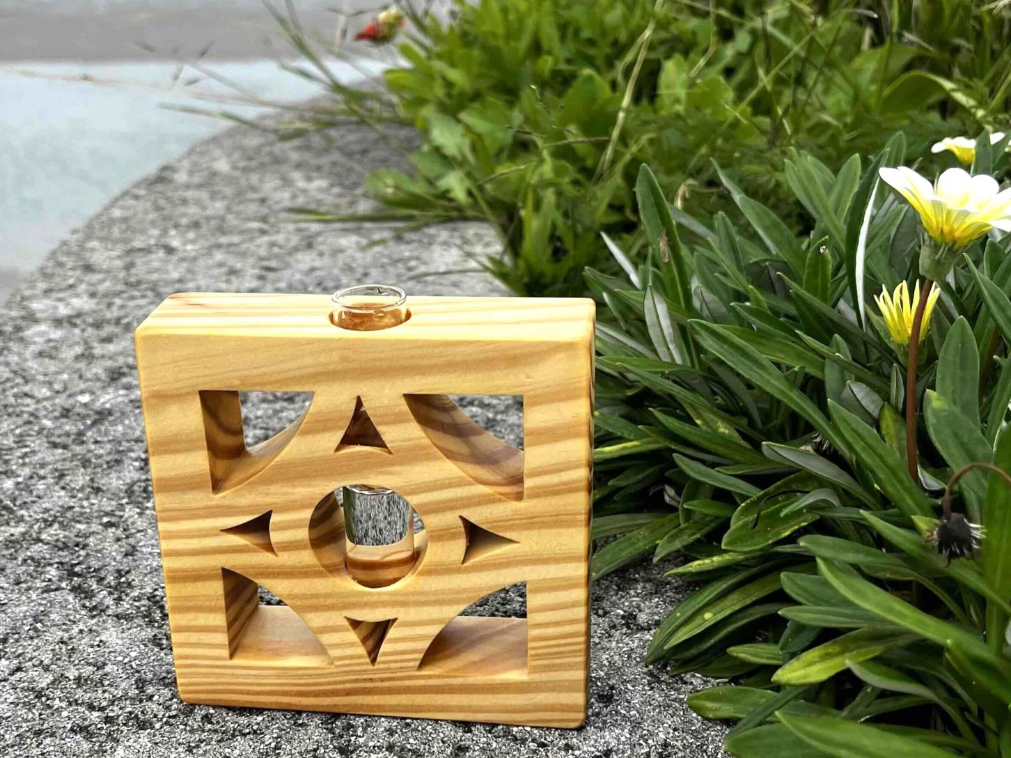 美しい木目が際立つ「琉球松」を使用した、手作りの一輪挿しです。