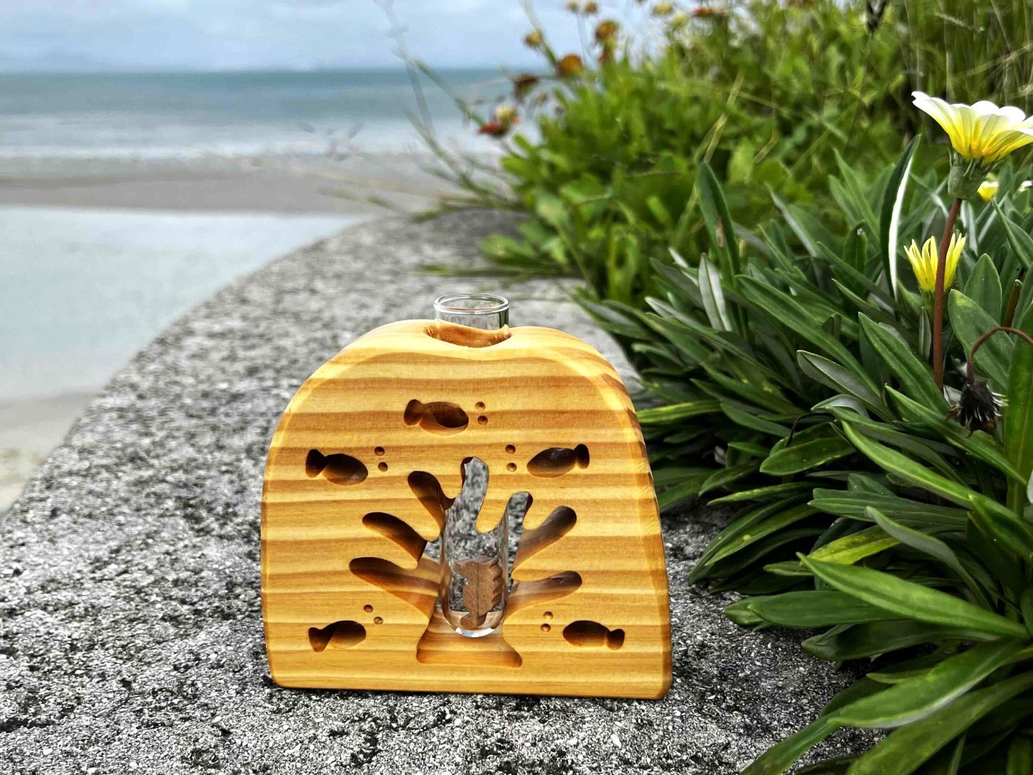 美しい木目が際立つ「琉球松」を使用した、手作りの一輪挿しです。
