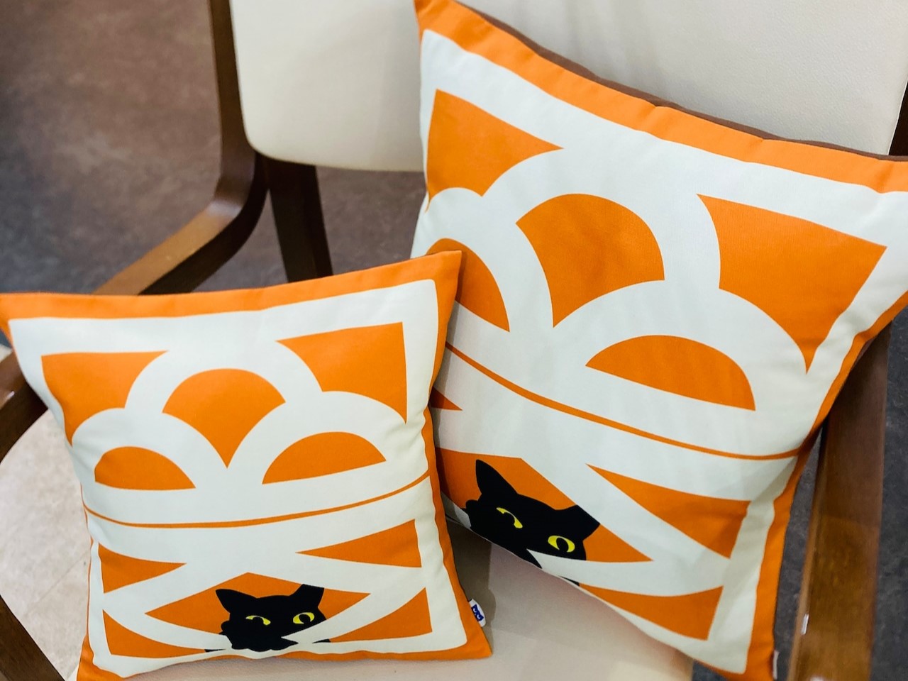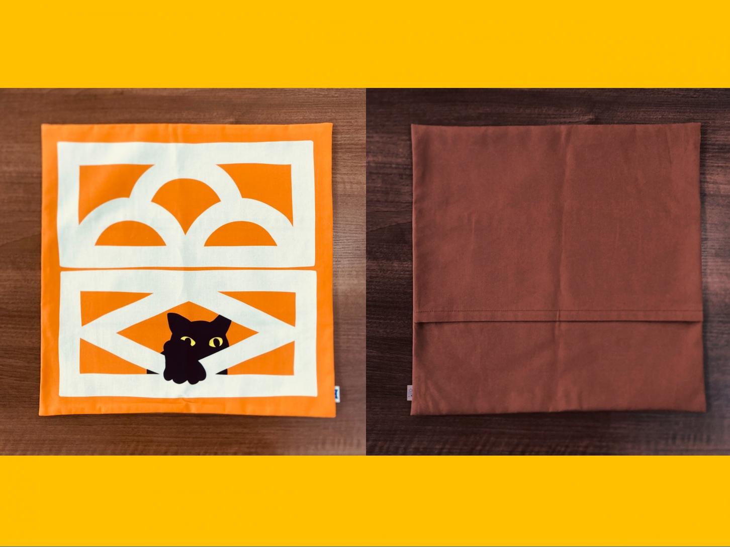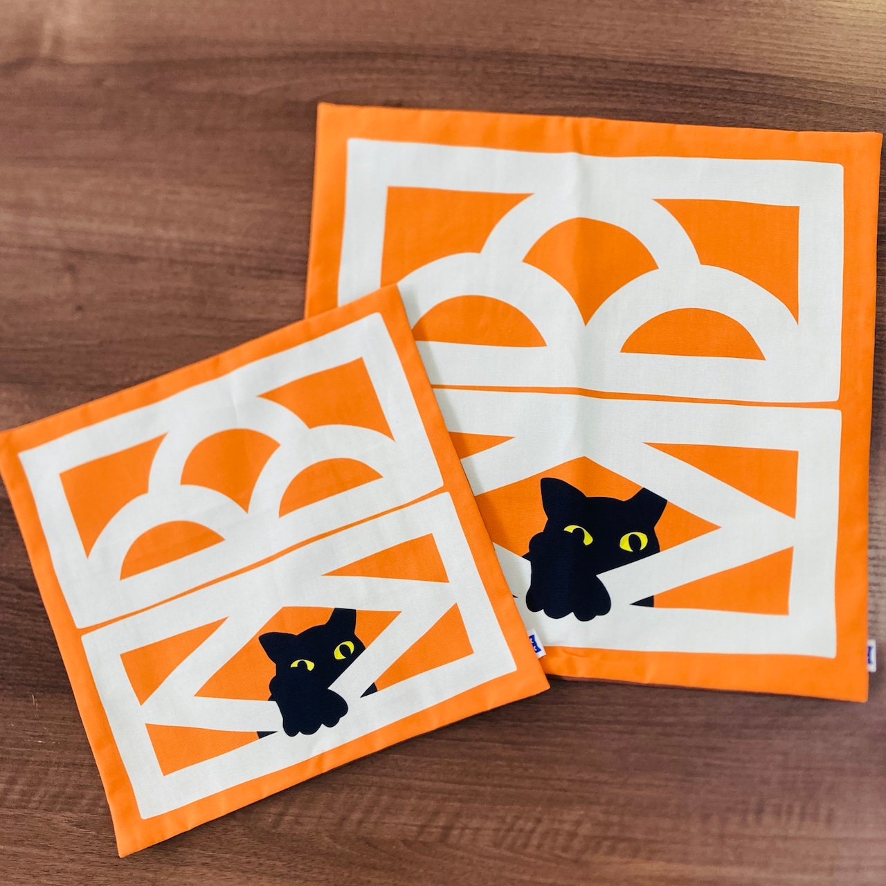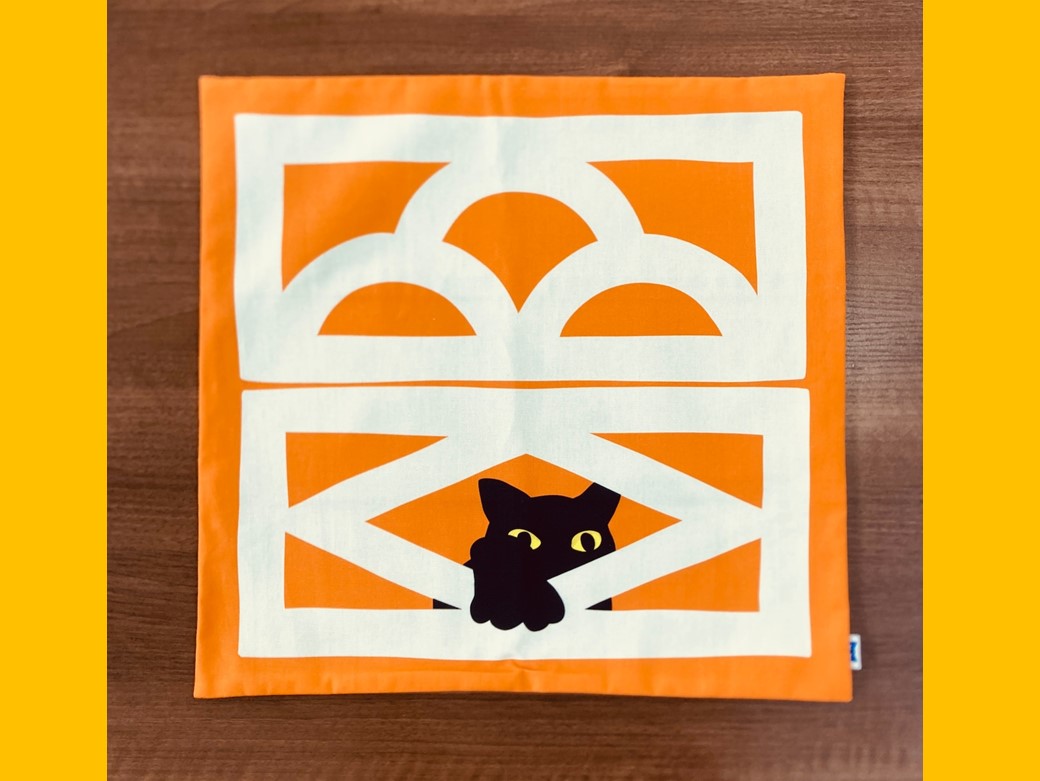 海猫商店の代表作、『花ブロックと猫』がクッションカバーになりました!