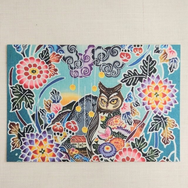 そんな景色を独り占めするリュウキュウコノハズクと様々な菊をデザインしました。