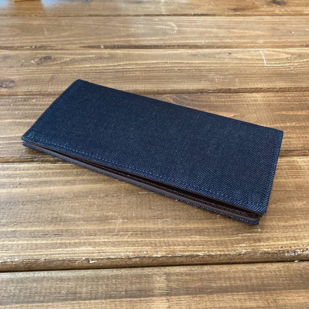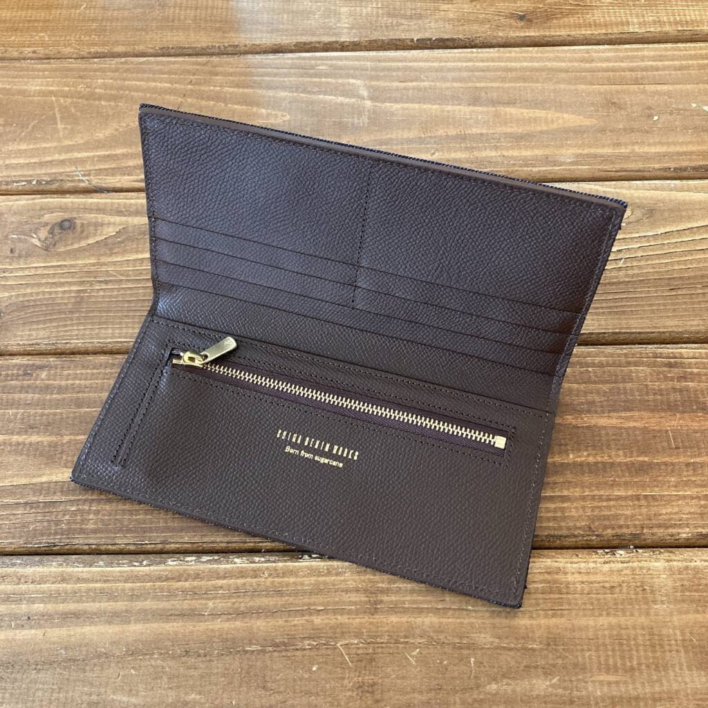 SHIMA DENIMの生地を使った長財布。 薄型でコンパクトなデザインは、ポケットやバッグにスッキリ収まり、いつでも持ち運びが簡単です。 使えば使うほど経年変化していき、味のある財布に育っていきます。