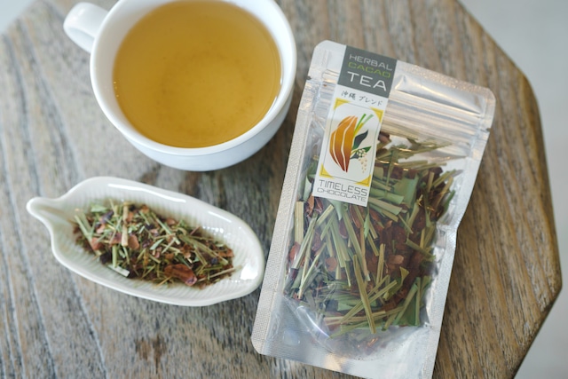 琉球薬草苑の月桃とレモングラス、TIMELESSのカカオをブレンドし、カカオの香りと爽やかな味わいが同時に楽しめるティーが出来上がりました。