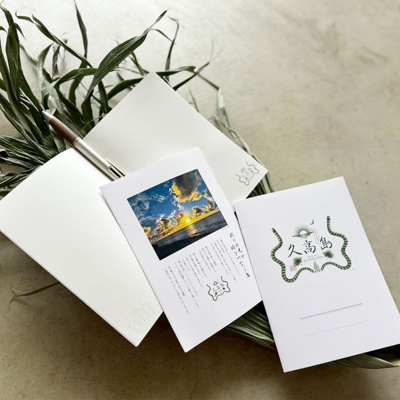 久高島のロゴをあしらった特別なノート。旅の思い出を綴ったり、叶えたい願いをそっと書き留めたり…。