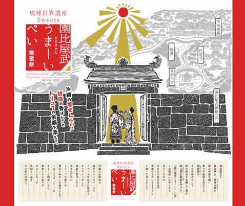 世界遺産「首里城跡」内にもう1つ世界文化遺産に登録された「園比屋武御嶽石門(そのひゃんうたきいしもん)」があります。園比屋武御嶽石門は首里城に比べて知名度も低いので、「お菓子を食べることで園比屋武御嶽石門を知ってもらうきっかけになれば」との想いで開発しました。