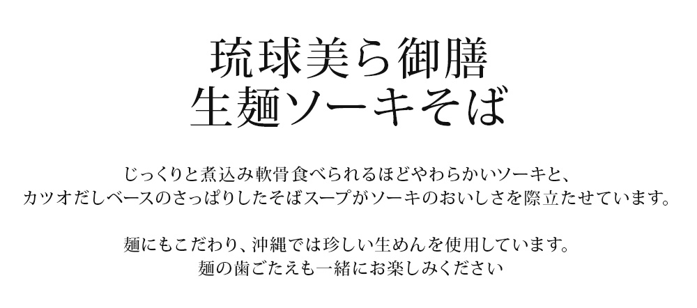 人気のソーキそばがご家庭でお手軽に楽しめます。最近では、さまざまなお店が工夫を凝らして、独自のソーキそばを出していますが、もっともソーキそばらしいソーキそば、昔ながらの味となっています。