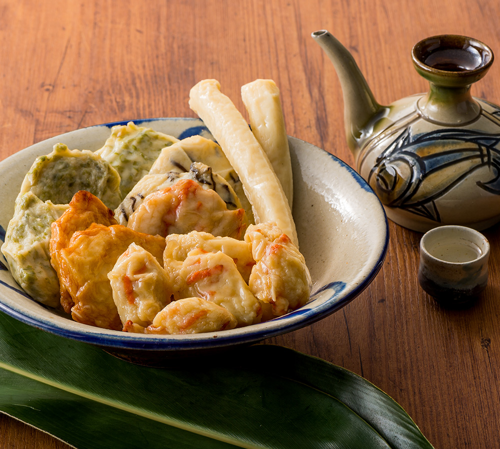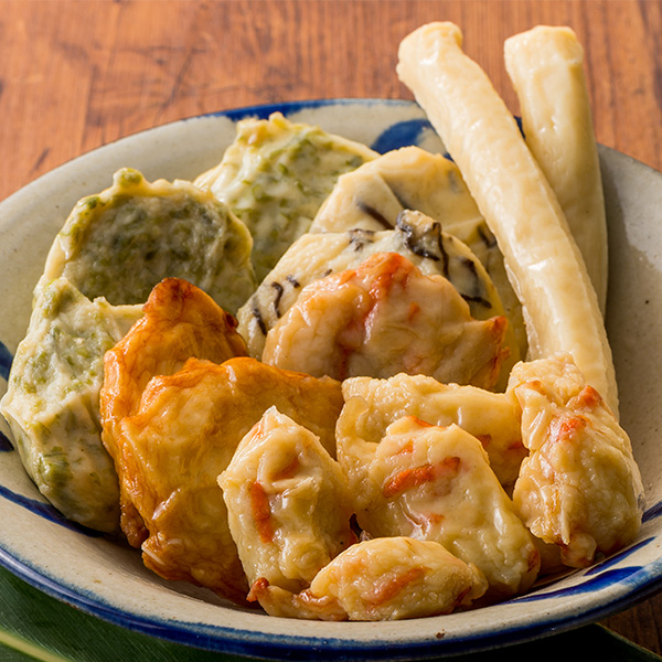 棒天(マルーグワァー)5本入×1袋、平天3枚入×4種(アーサ、もずく、にんにく、ゴボー)、タラシ揚げ×1袋