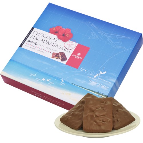 沖縄の人気洋菓子店エーデルワイス沖縄の商品。沖縄の素材石垣の塩を使ったショコラマカダミアサブレ。バレンタインやホワイトデーのギフトにいかがですか。