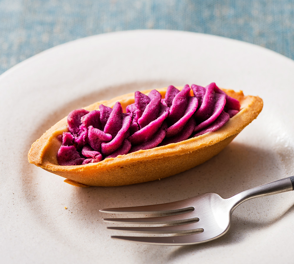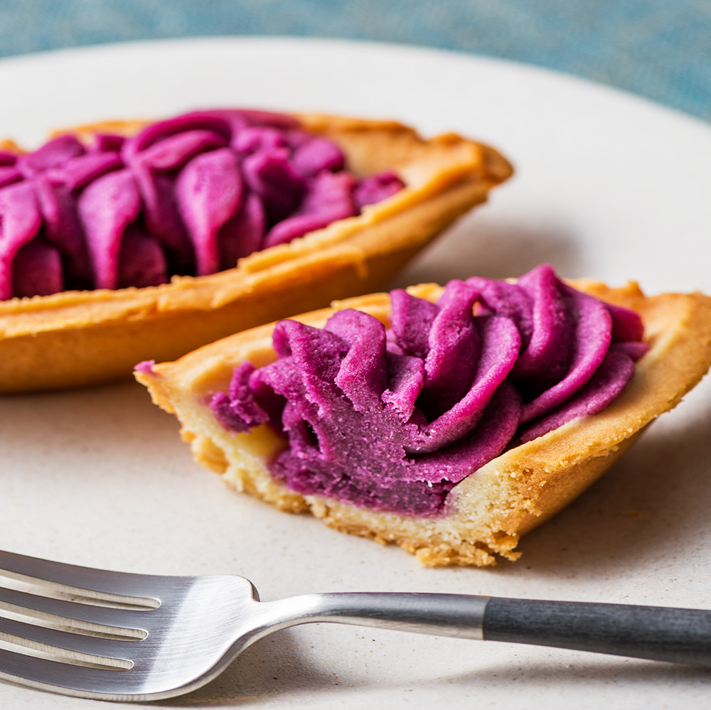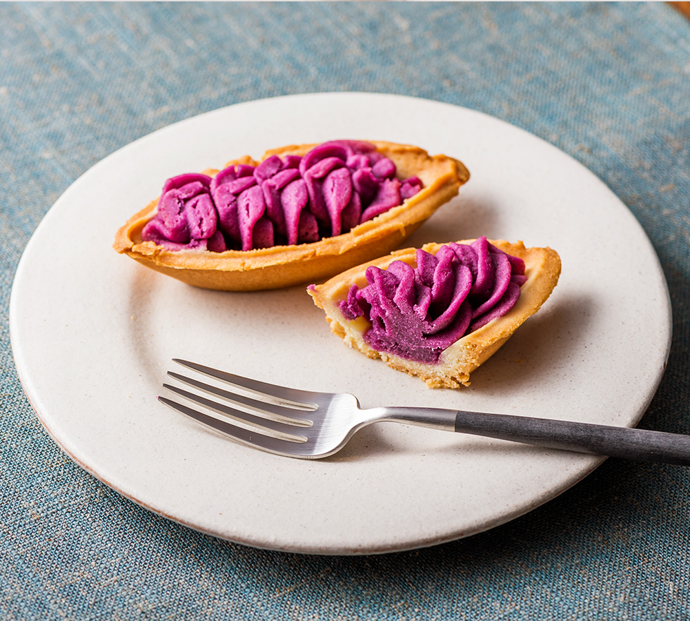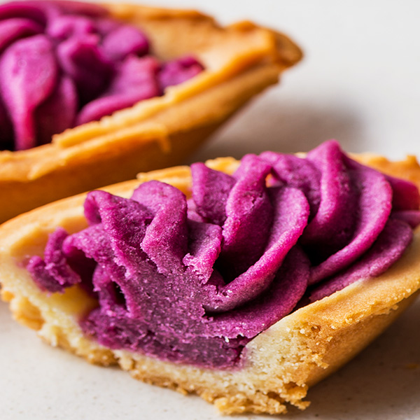 しっとりとした紅いも生地のやさしい甘さと、ほろりとくずれるタルト生地がベストマッチの美味しさです。