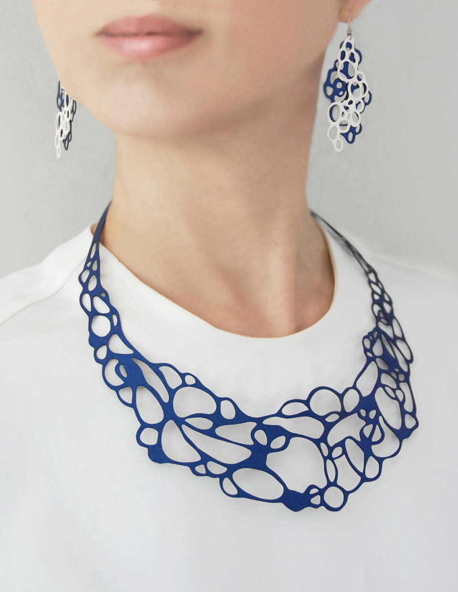 アクセサリーと言えば、金属製のものや、ゴムやプラスチックなどを使用したものが多いですが、こちらは100%「紙」でできたネックレス。