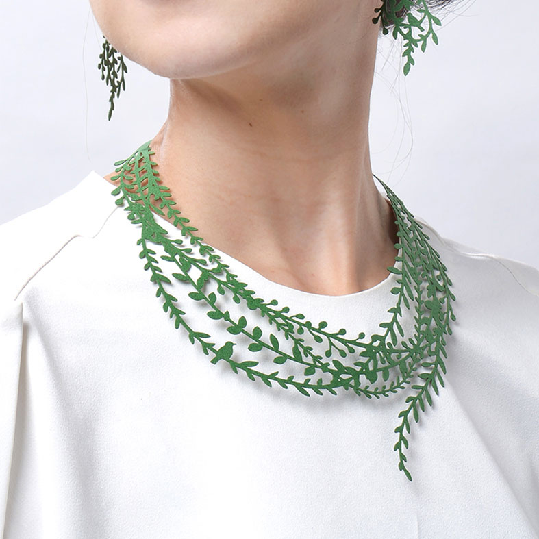 アクセサリーと言えば、金属製のものや、ゴムやプラスチックなどを使用したものが多いですが、こちらは100%「紙」でできたネックレス。