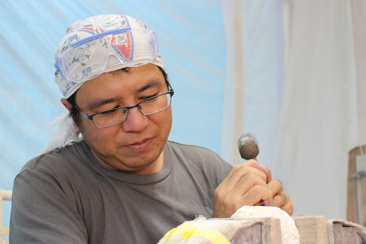 沖縄県立芸術大学で彫刻を勉強した大地さん。卒業後、友人に石獅子の存在を教えてもらい、実際に見に行いきました。そこで出会った石獅子に衝撃を受けたと言います。石獅子を作りたいと思った大地さんは、沖縄各地に点在する石獅子を巡り、独自に研究を重ね、制作を始めたのだそう。