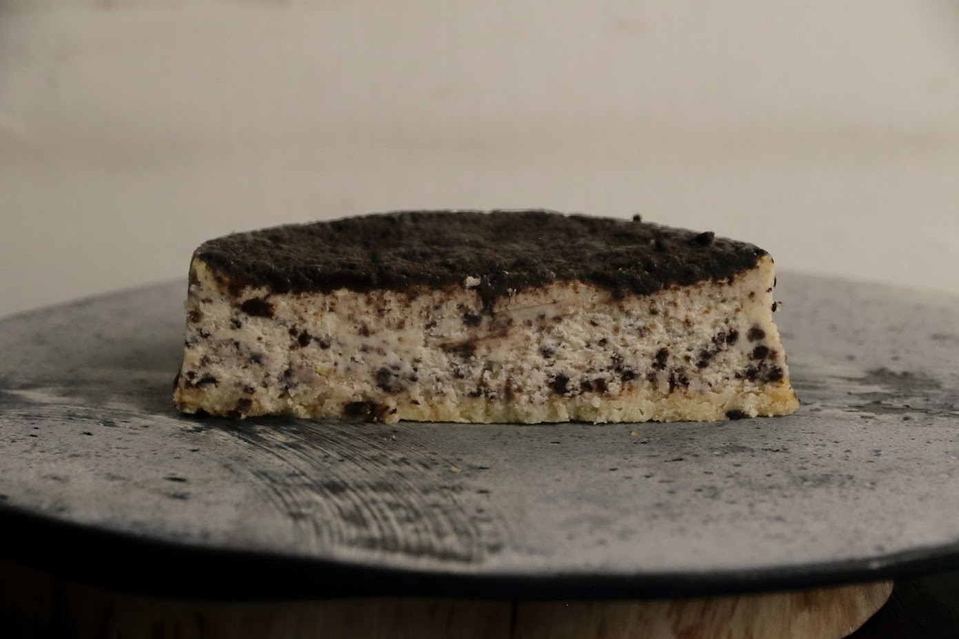 ブラックココアのビスケットを贅沢に、ケーキ生地の中、