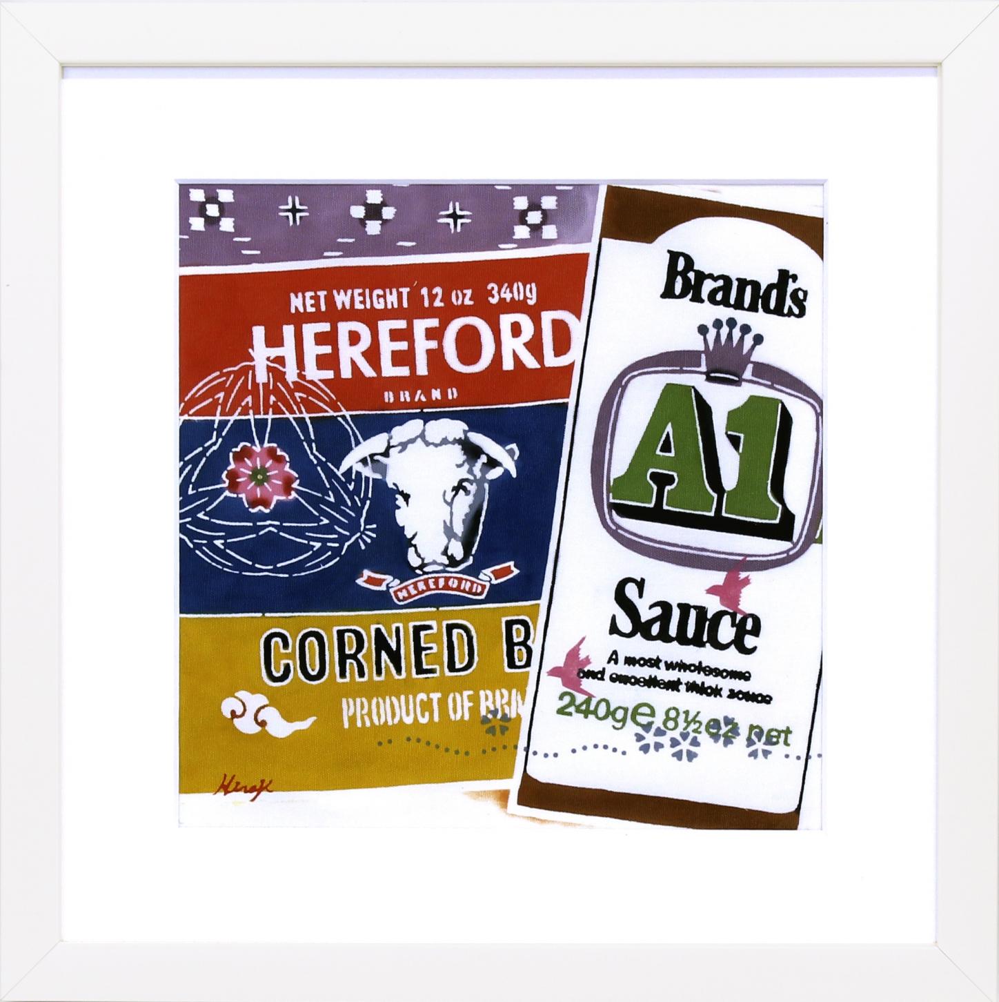 沖縄で古くから親しまれている、ヘアフォードのコンビーフ缶とステーキが大好きな沖縄県民の一家に必ず1本あるといわれる程大人気なA1ソースの組み合わせ。