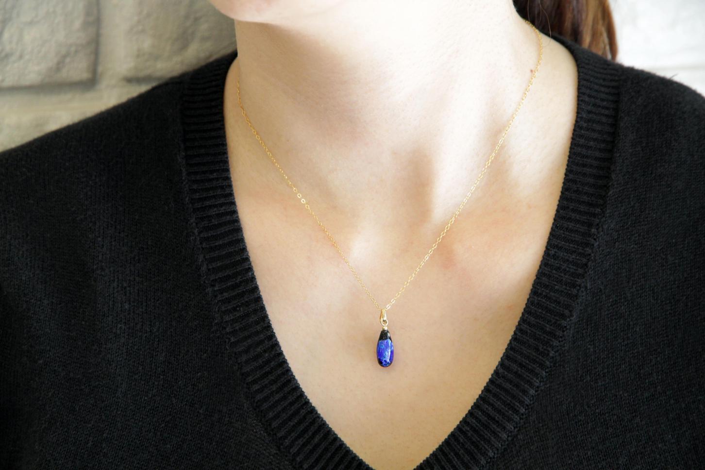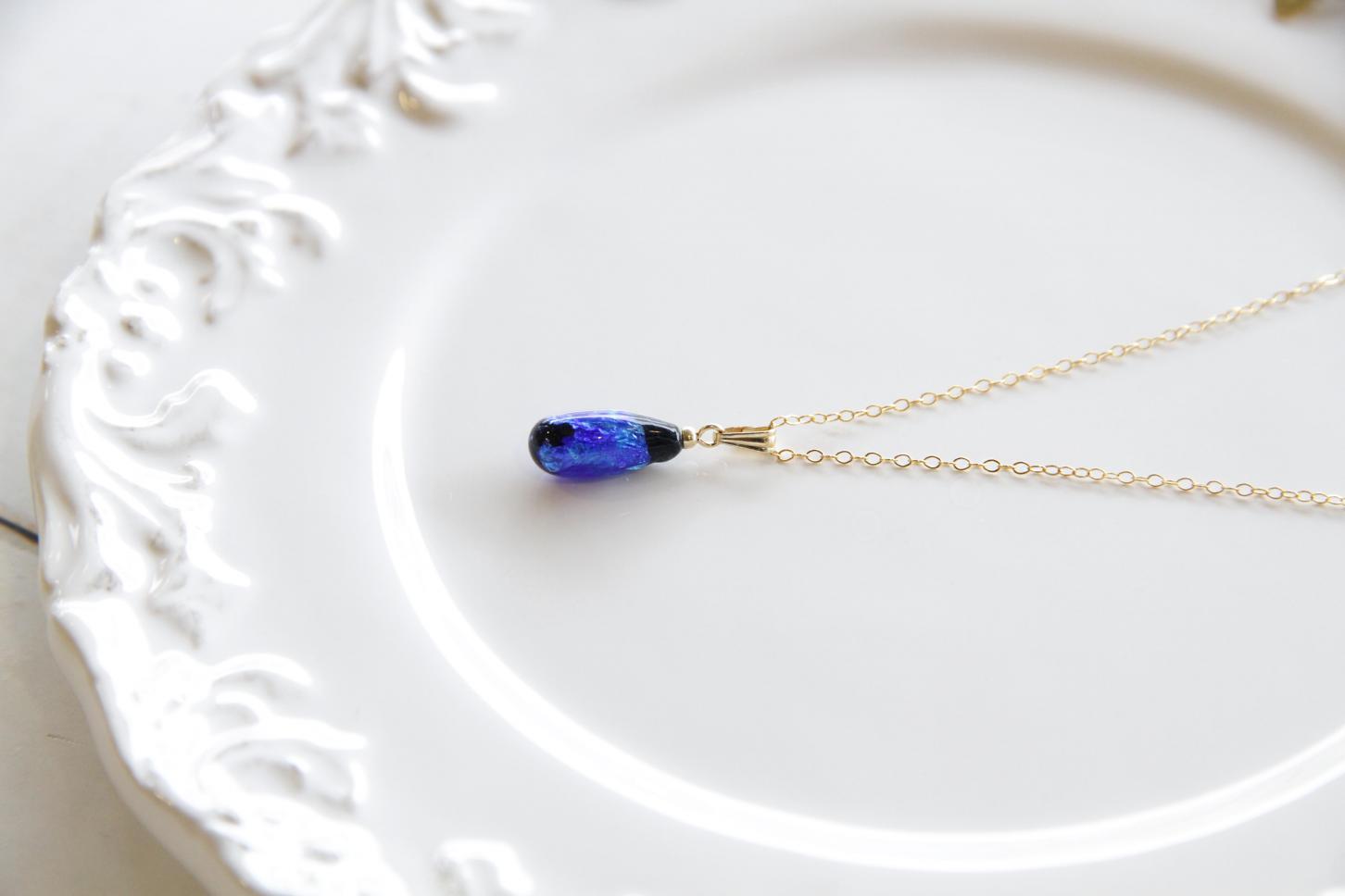 しずくホタルガラス(小)のシンプルペンダントは、日常使いでも大活躍なペンダントです。シンプルなデザインなのでギフト用にもお勧めです。