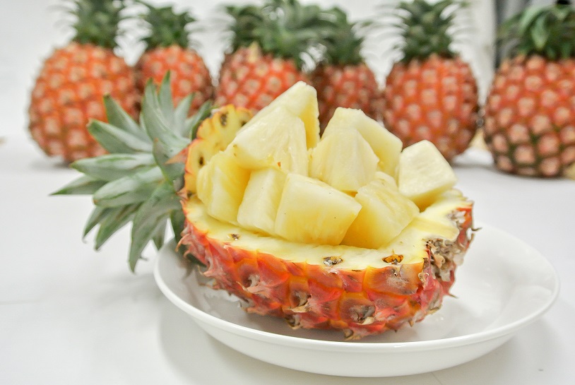 通常のパイナップルと同様に、包丁でカットしてお召し上がりください。ピーチパインは芯も柔らかくそのままお召し上がり頂けます。