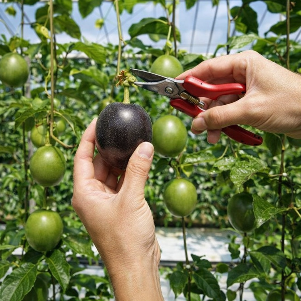 良質なパッションフルーツにする為に徹底した日照時間や水分調整、