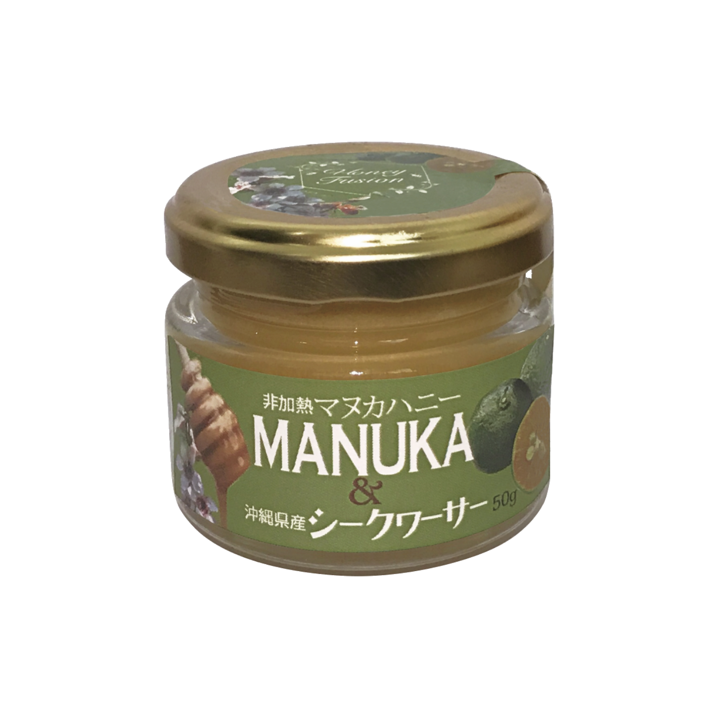 ニュージーランドのみに生息している野生のマヌカ花から採取した非加熱の生のプレミアムマヌカハニーと、沖縄県産シークヮーサーのフュージョン(統合)商品。