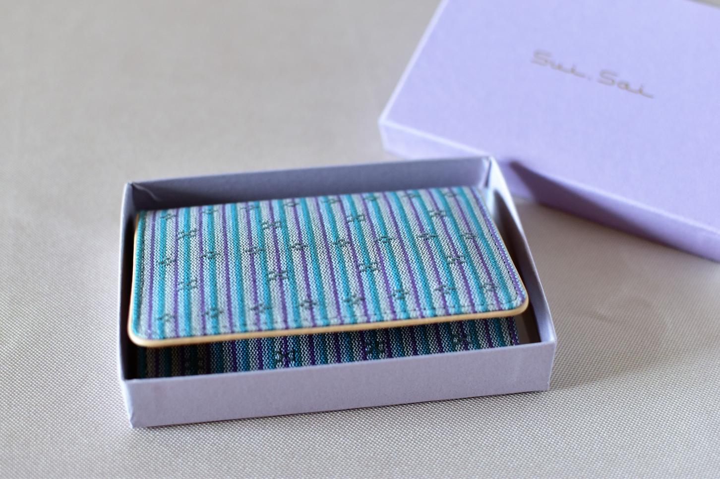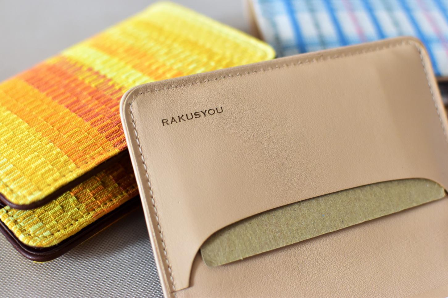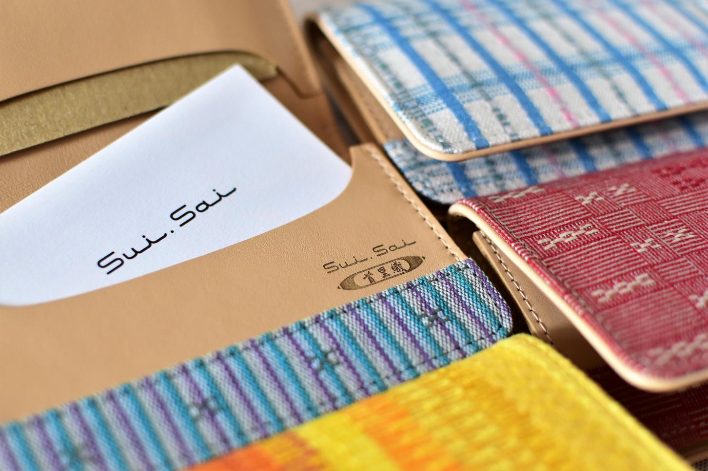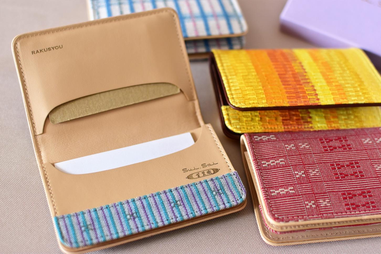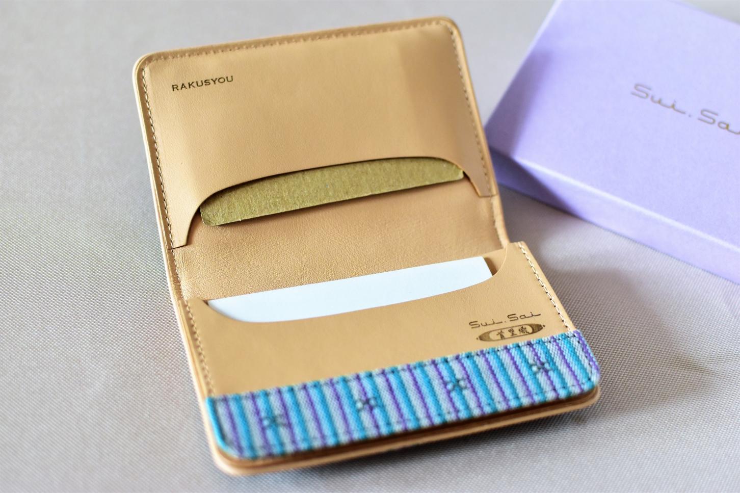 Sui.Saiの織布に組み合わせたRAKUSYOUの上質な革と、名刺入れを開いた時に目を引く美しい織が見えるのも、この名刺入れの特徴であり、お楽しみいただけるポイントとなっています。