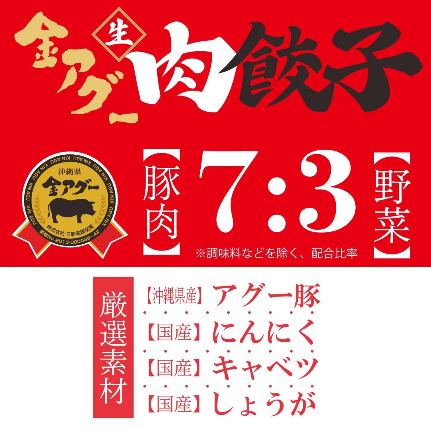 沖縄県内で大人気の金アグーを使用した餃子を大ボリュームの36個入りでお届け。餃子好きな方へ大変お勧めです。