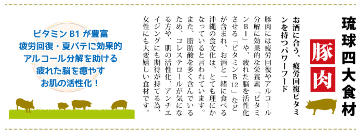 豚肉(豚足)、醤油、砂糖、みりん、酒((泡盛)、魚介エキス、おろし生姜、ポークエキス、調味料(アミノ酸等) (原材料の一部に小麦、豚肉、大豆を含む)