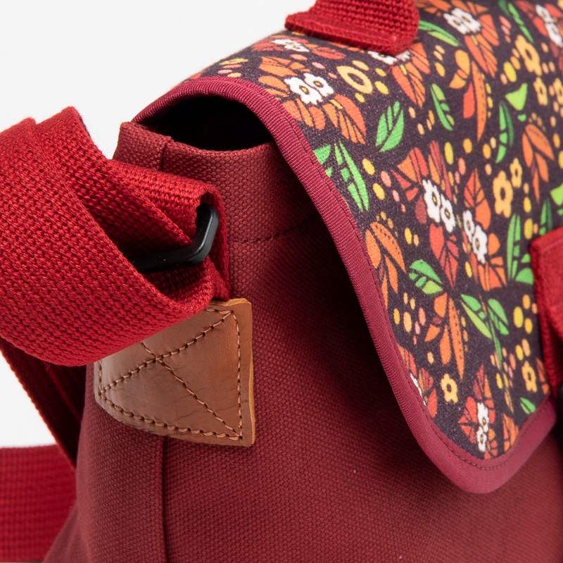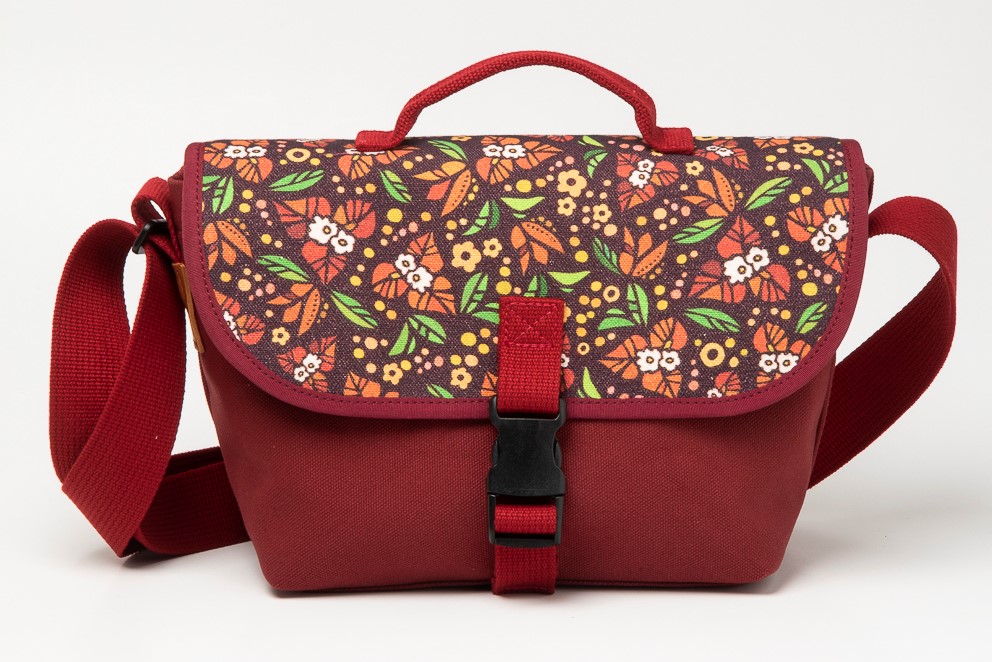 手持ち、肩掛けと2ウェイで使用できるメッセンジャ-バッグ。ちょっとしたお出かけにちょうどいいサイズで、前面のフラップには、沖縄の人気イラストレーター・pokke104(池城由紀乃)さんのオリジナリティあふれる作品がプリントされています。