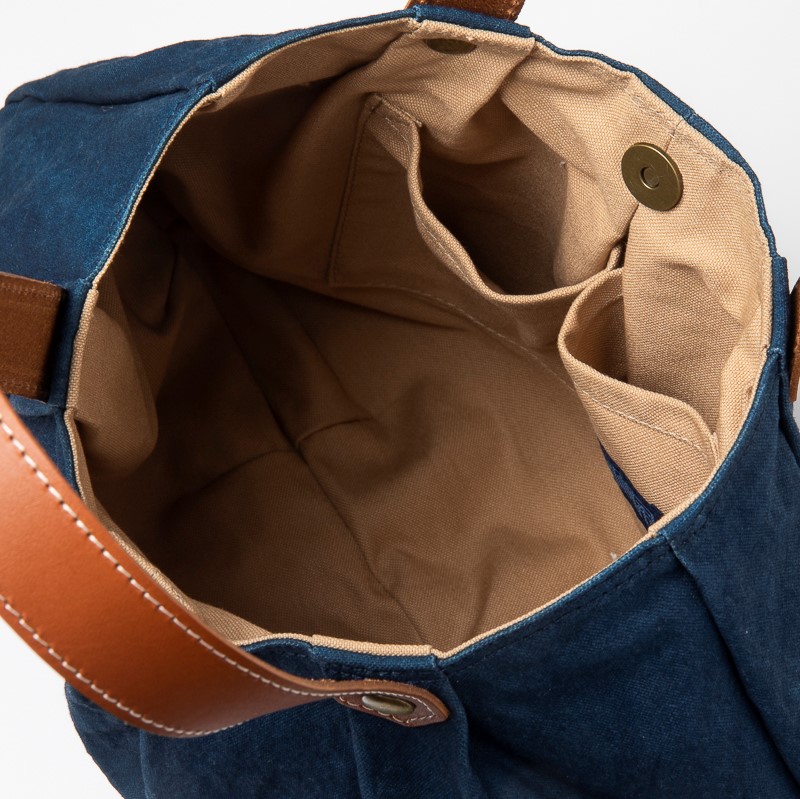綿帆布とは平織りで織られた厚手の布で、キャンパス地とも呼ばれるもの。帆船の帆として使うために作られたのが始まりで、丈夫なしっかりとした質感が特徴です。