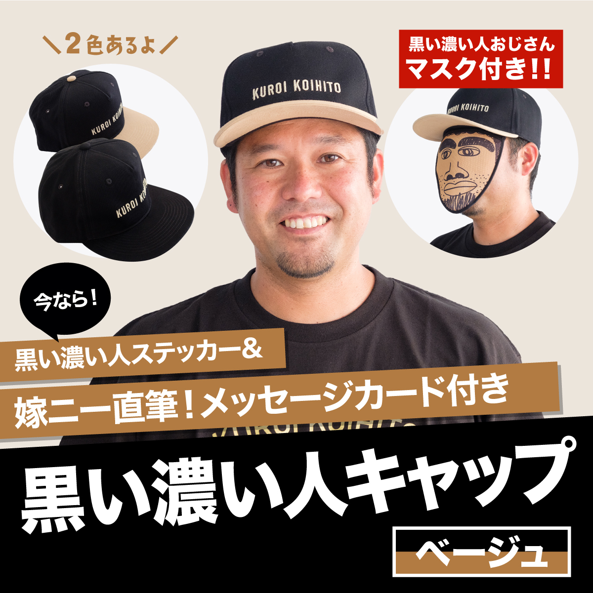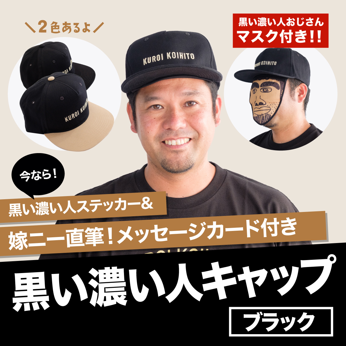 黒い濃い人の変身機能付きキャップです。