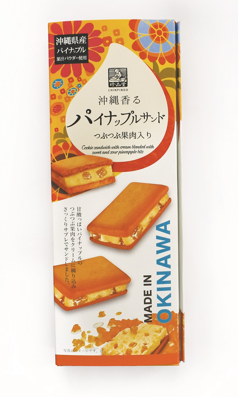 本商品は甘酸っぱいパイナップルのつぶつぶ果肉をクリームに練り込みさっくり生地でサンドしました。