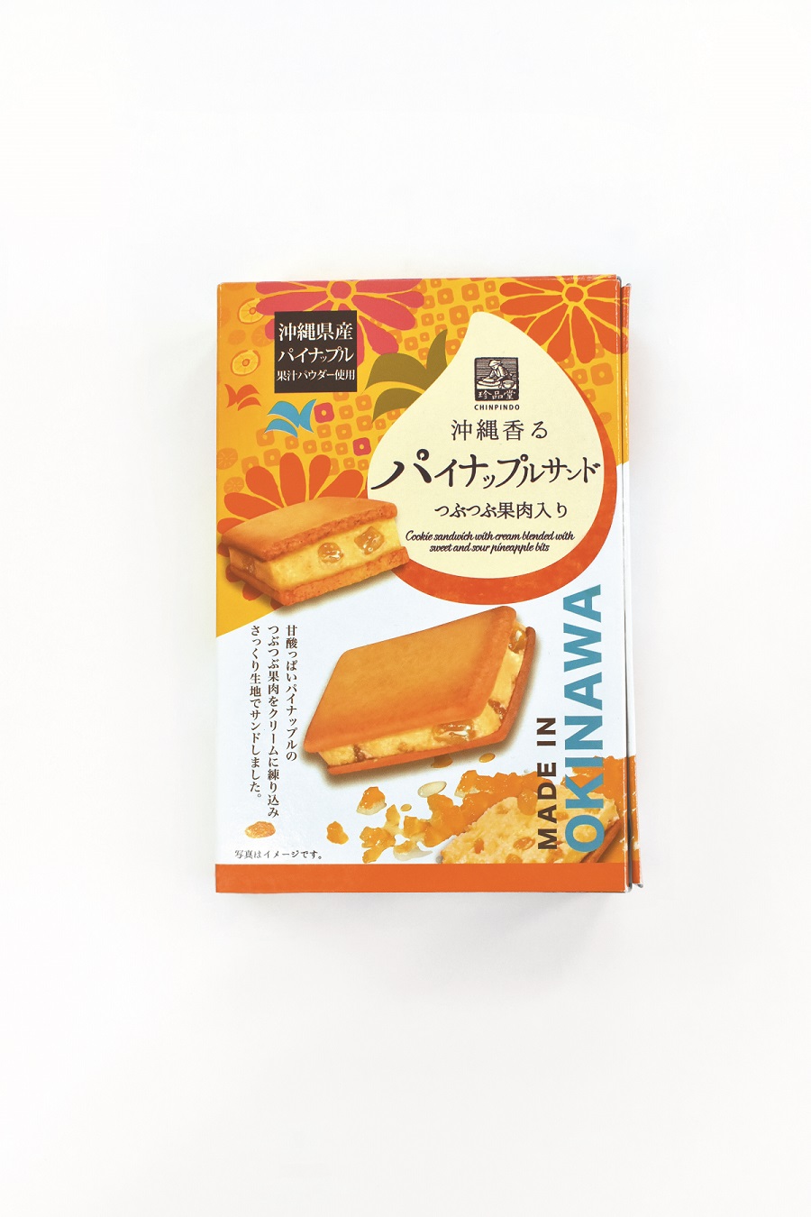 本商品は甘酸っぱいパイナップルのつぶつぶ果肉をクリームに練り込みさっくり生地でサンドしました。