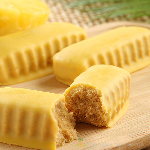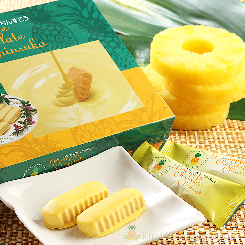 沖縄の伝統菓子ちんすこうをホワイトチョコレートをベースにして作ったパイナップルパークオリジナルのチョコレートでコーティングしました!