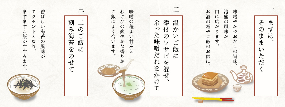 「味噌だれが絶品!」というお客様の声から生まれた“三度おいしい”新しい食べ方をご提案します。
