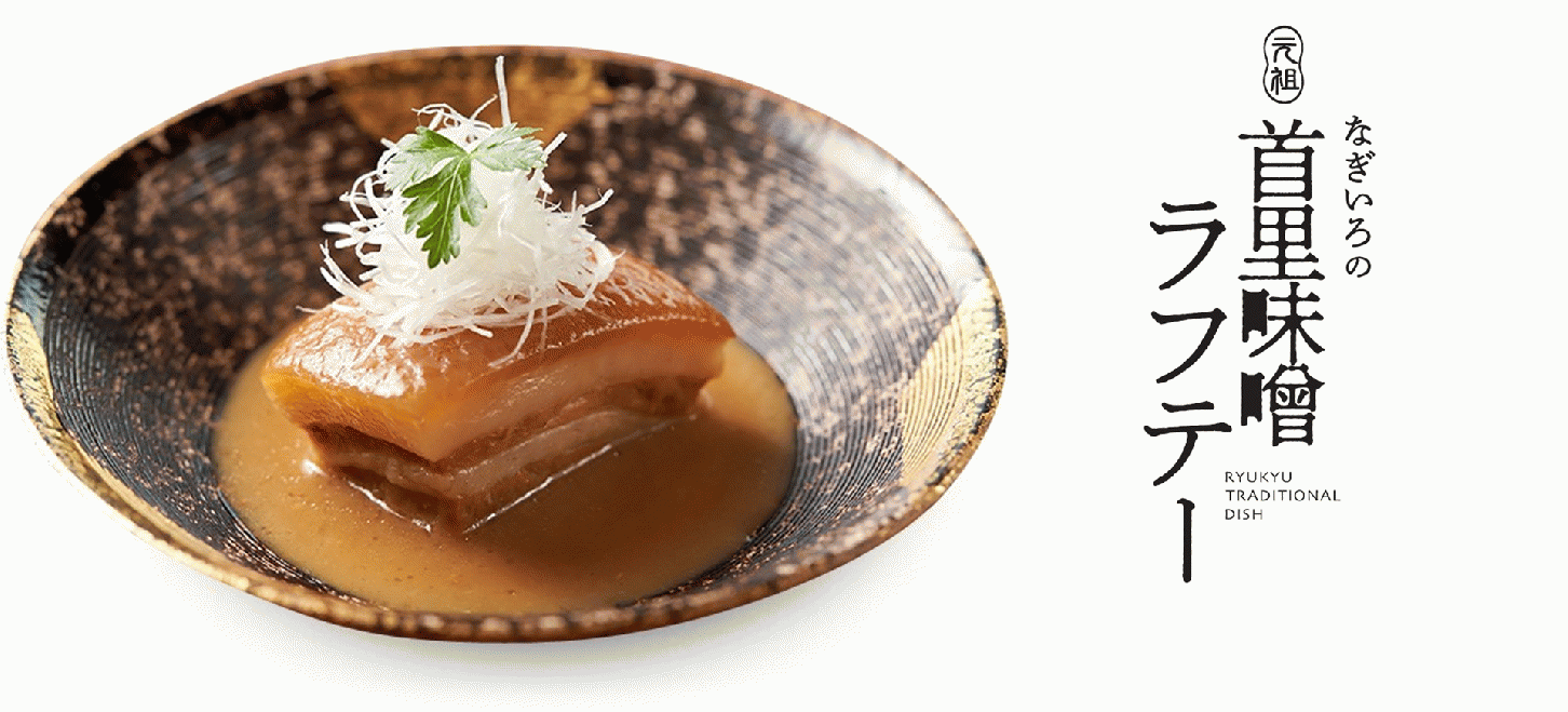 この度、試行錯誤を重ね、ようやく自信をもって皆さまにお届けできる“なぎいろの元祖 首里味噌ラフテー”が出来上がりました。