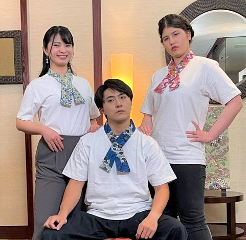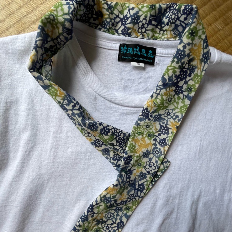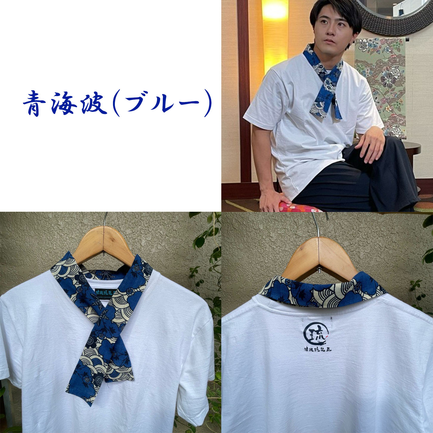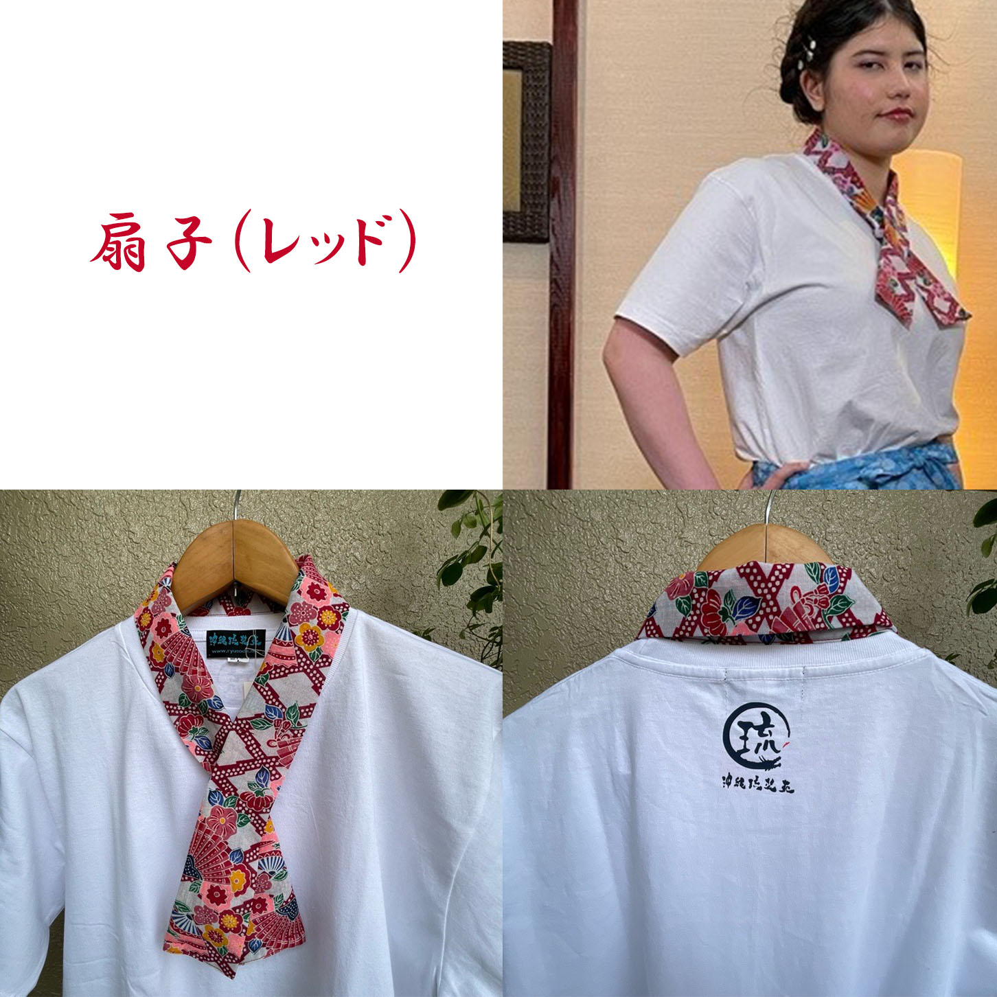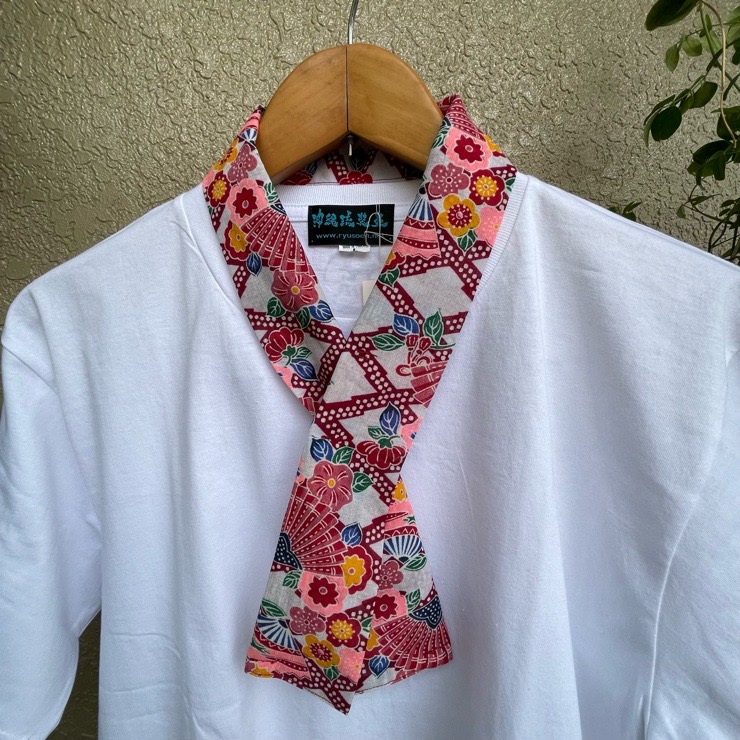 「紅型の古典柄」を使用している「半衿Tシャツ」