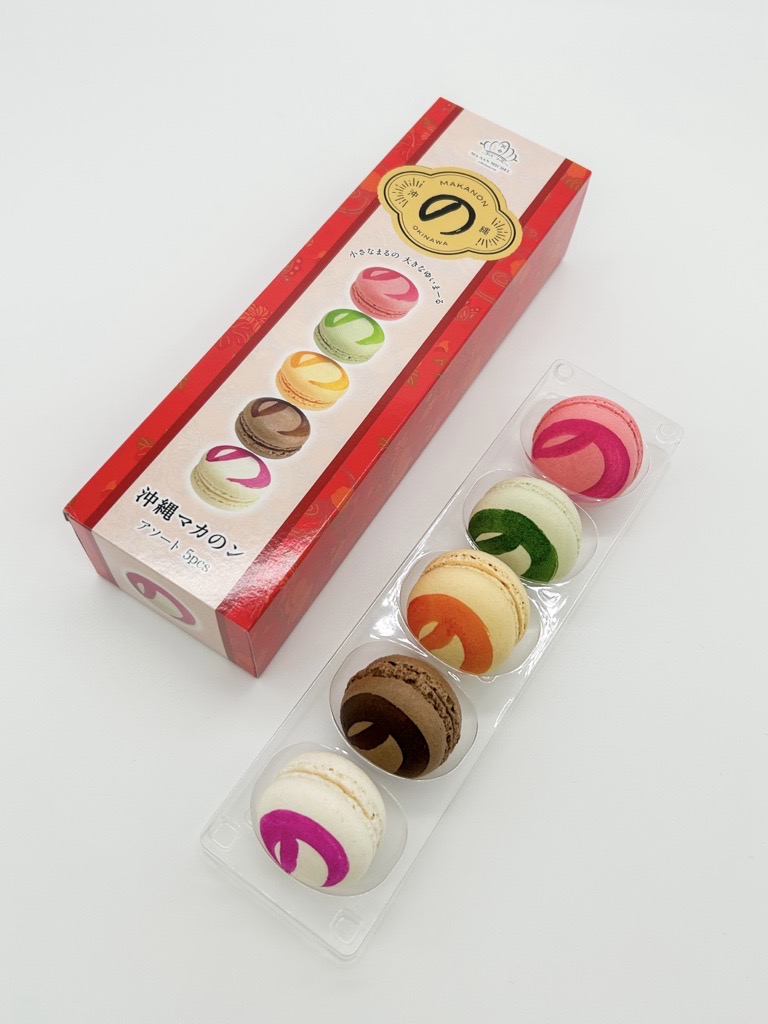 5種類の風味のマカロンが1つずつ入っています。