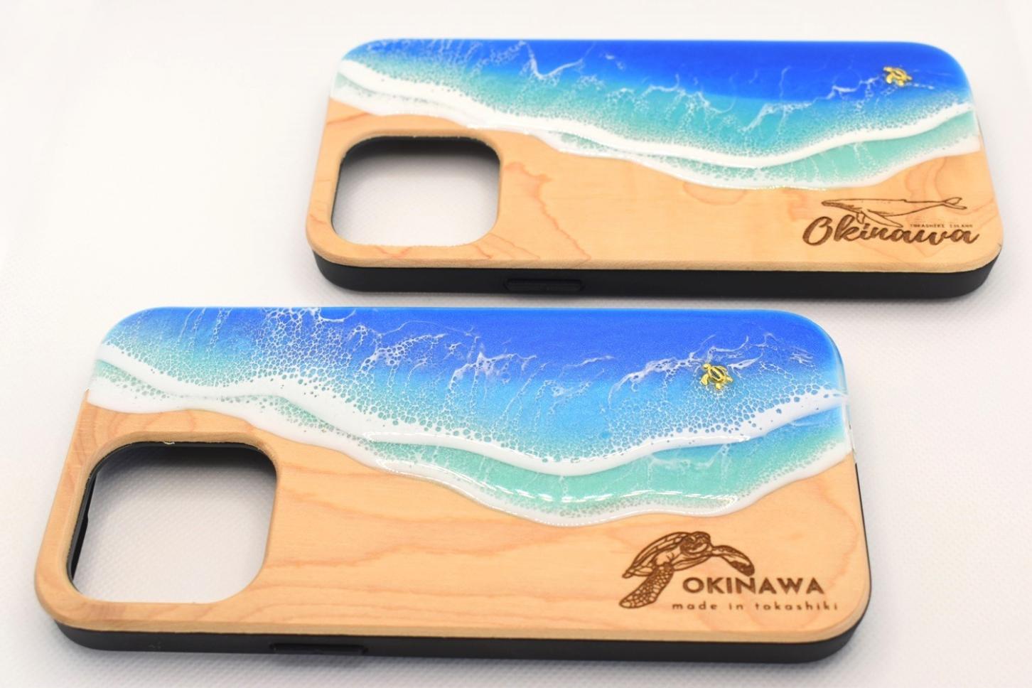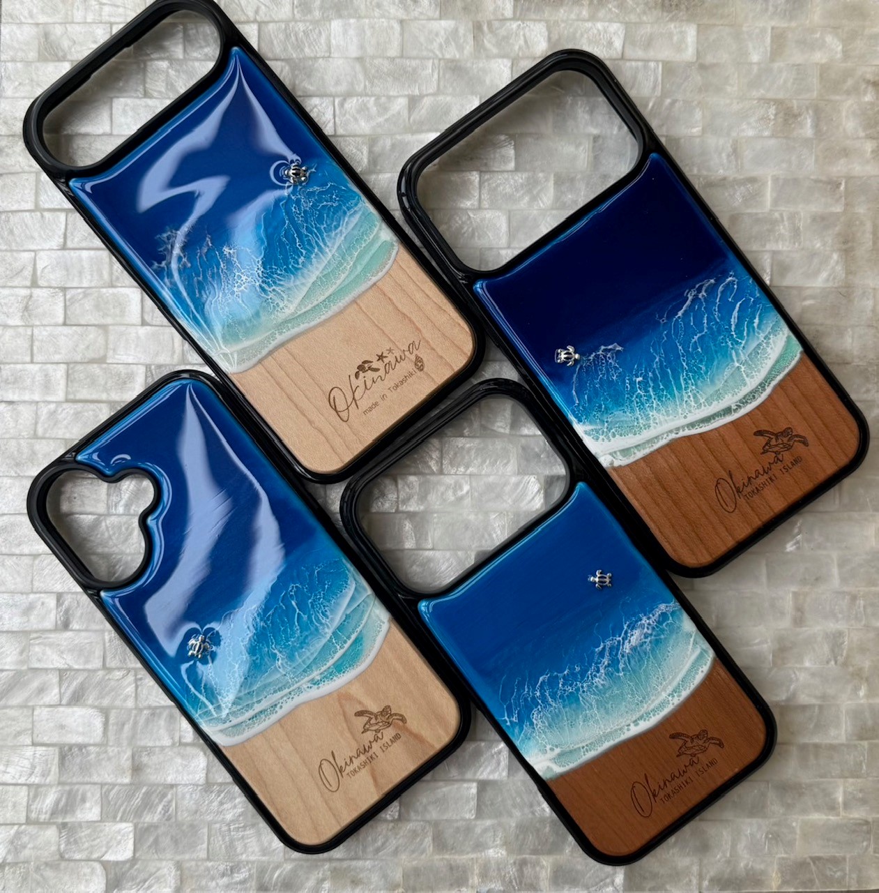 その海をそのまま切り取ったようなレジンアートを手掛けている、工房churasora(ちゅらそら)のiPhoneケースです。