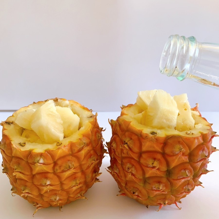 そのピーチパインの実をくり抜き、カップのようにして中に泡盛やウイスキー、お子様だったらサイダーなどを入れます。