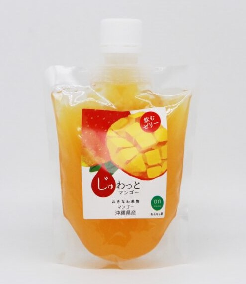 沖縄県産のマンゴーを贅沢に使用した『じゅわっとマンゴー』は、まるでフレッシュマンゴーをそのまま味わっているかのような、濃厚で甘い味わいが特徴の飲むゼリーです。