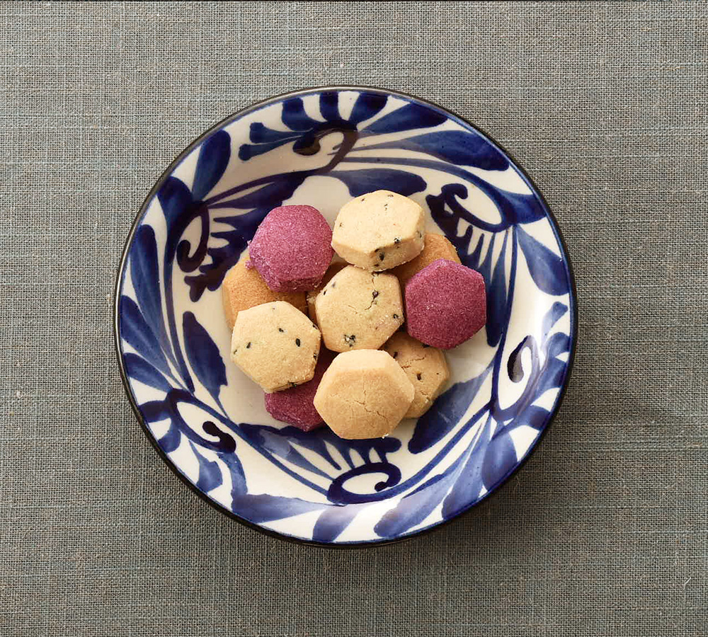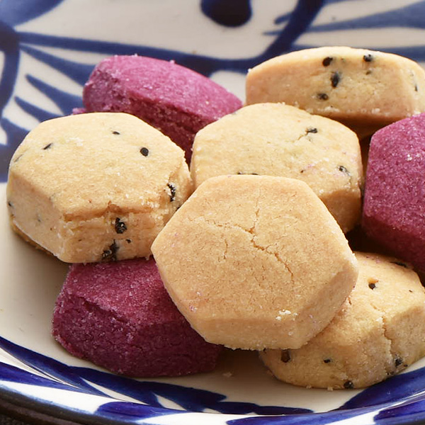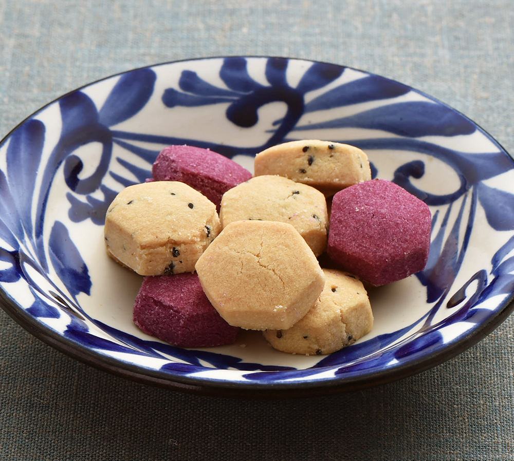 小麦粉、砂糖、ラード、黒糖、ごま、食塩、チョコレート、紅芋、着色料(ラック)、膨張剤、酸化防止剤(V.E)